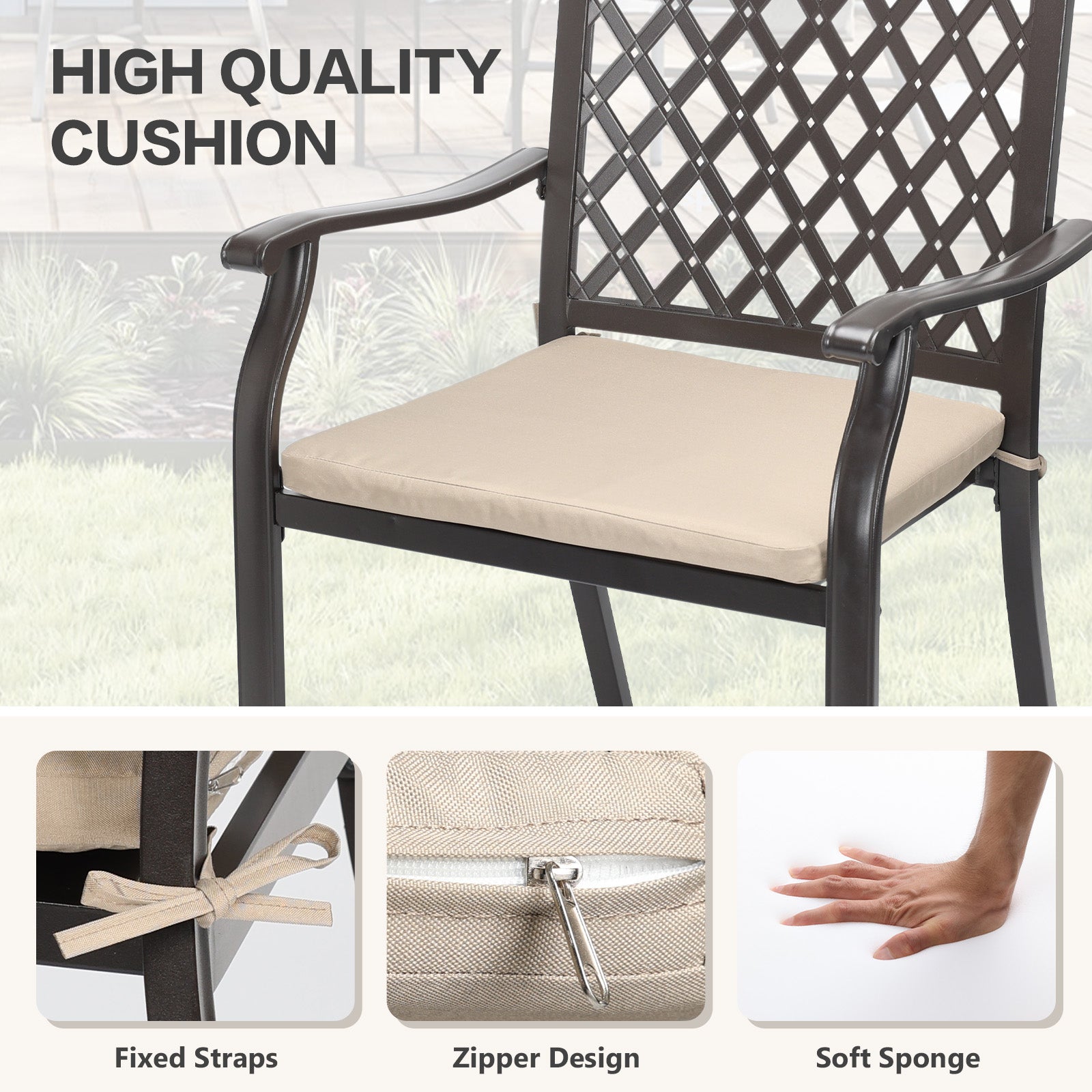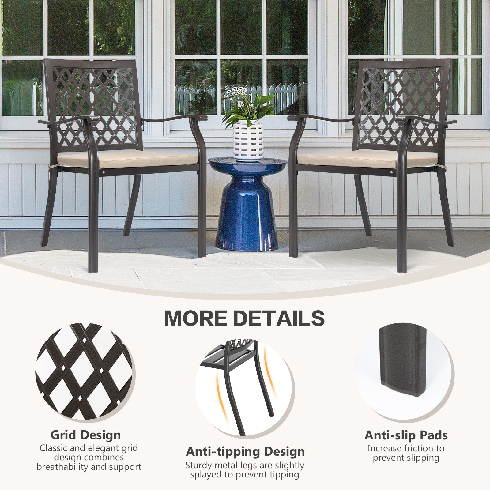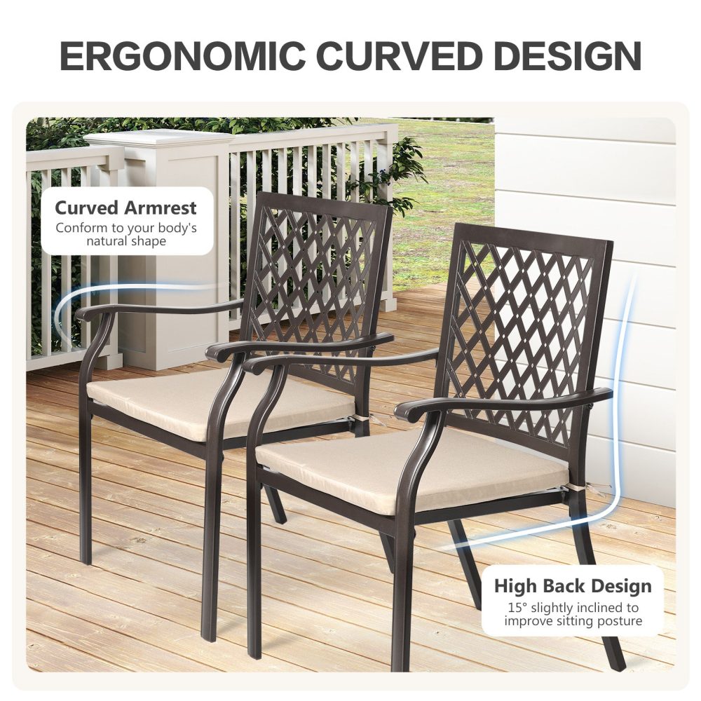 グリッドデザイン:当社の屋外パティオダイニングチェアは、ダイヤモンドグリッドの背もたれデザインが特徴で、美しい外観を高めています。
